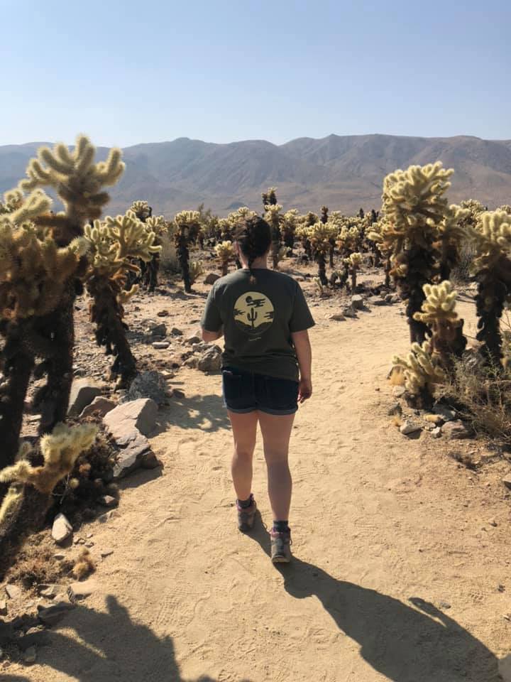 10:30 AM – From here we followed the main (and only at this point) road deeper into the park. To me, one of the coolest parts about this drive was that on one side of the road you could see the Colorado Desert, and on the other, very distinctly, the Yucca Valley Desert. We then walked the 0.25 mile loop through the Cholla Cactus Garden, making sure to stay on the trail and be aware of our surroundings.